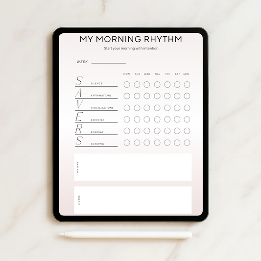 This one-page printable includes space for your intention, gratitude, grounding practices, and encouraging micro-prompts — created to support a soft morning routine that feels nourishing, not overwhelming.