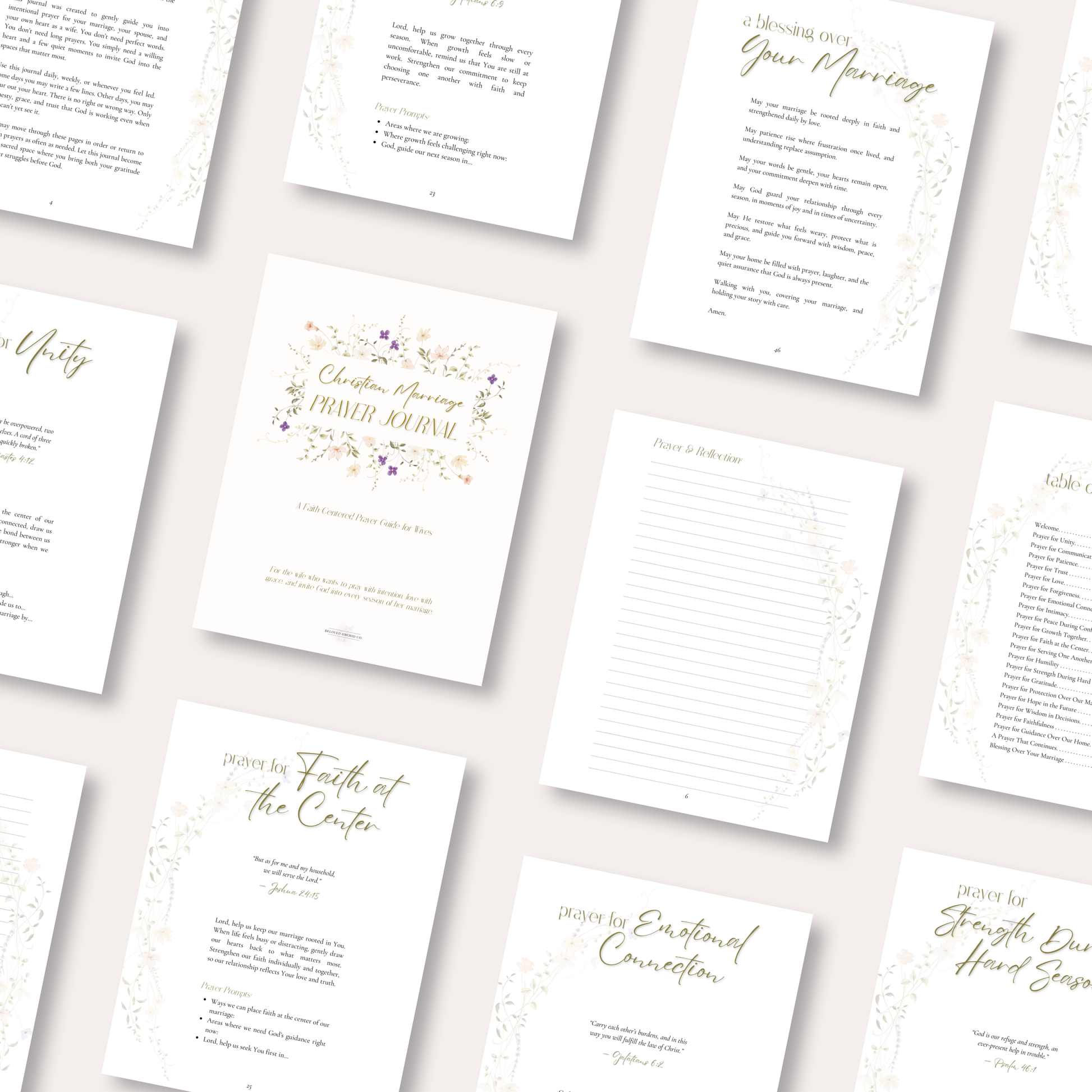 This printable journal includes 20 guided marriage prayer themes, each designed to support your relationship spiritually and emotionally.