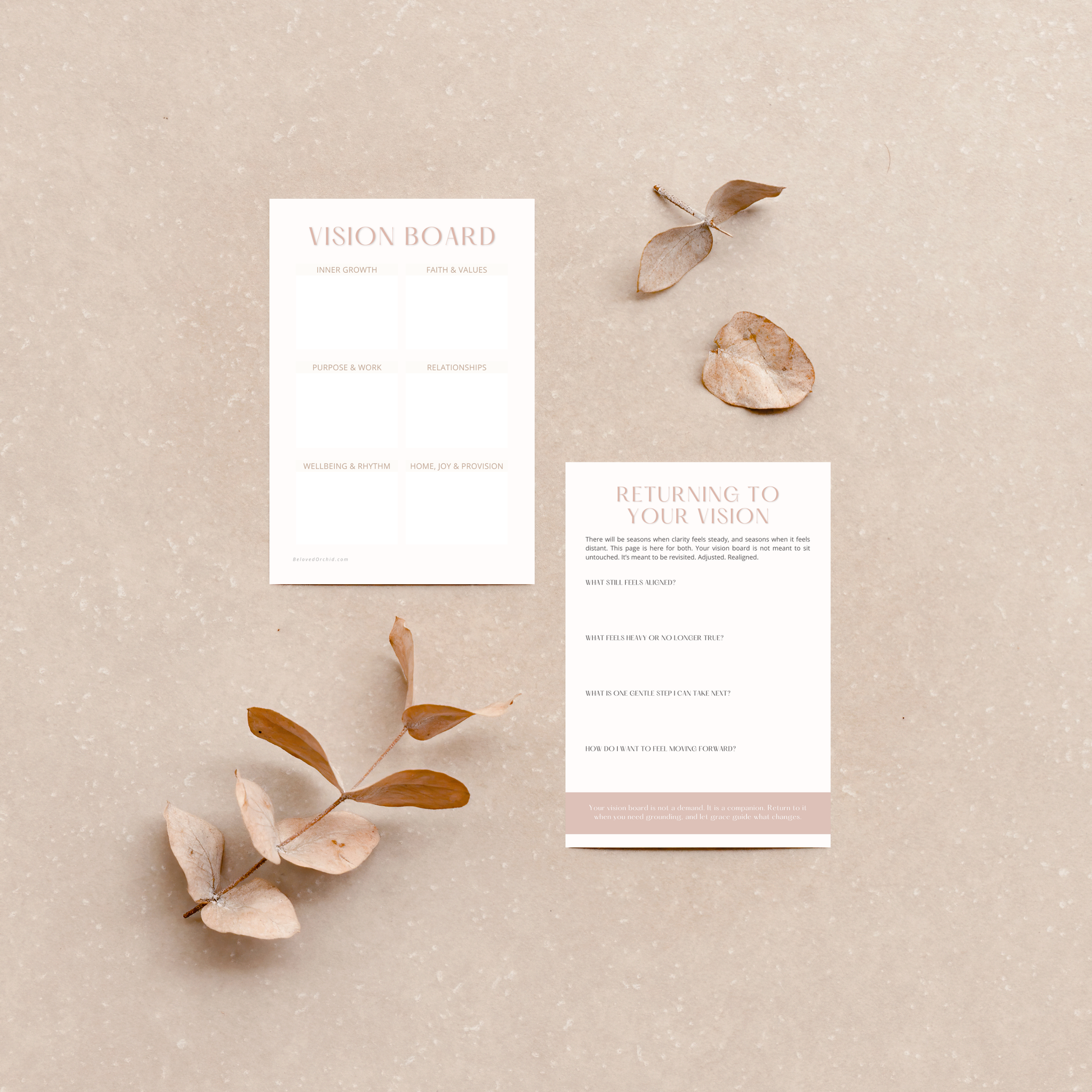 Create a Vision Board is a thoughtfully designed printable guide for women who want a soft reset. A moment to pause. To reflect. To gently name what they’re growing toward.