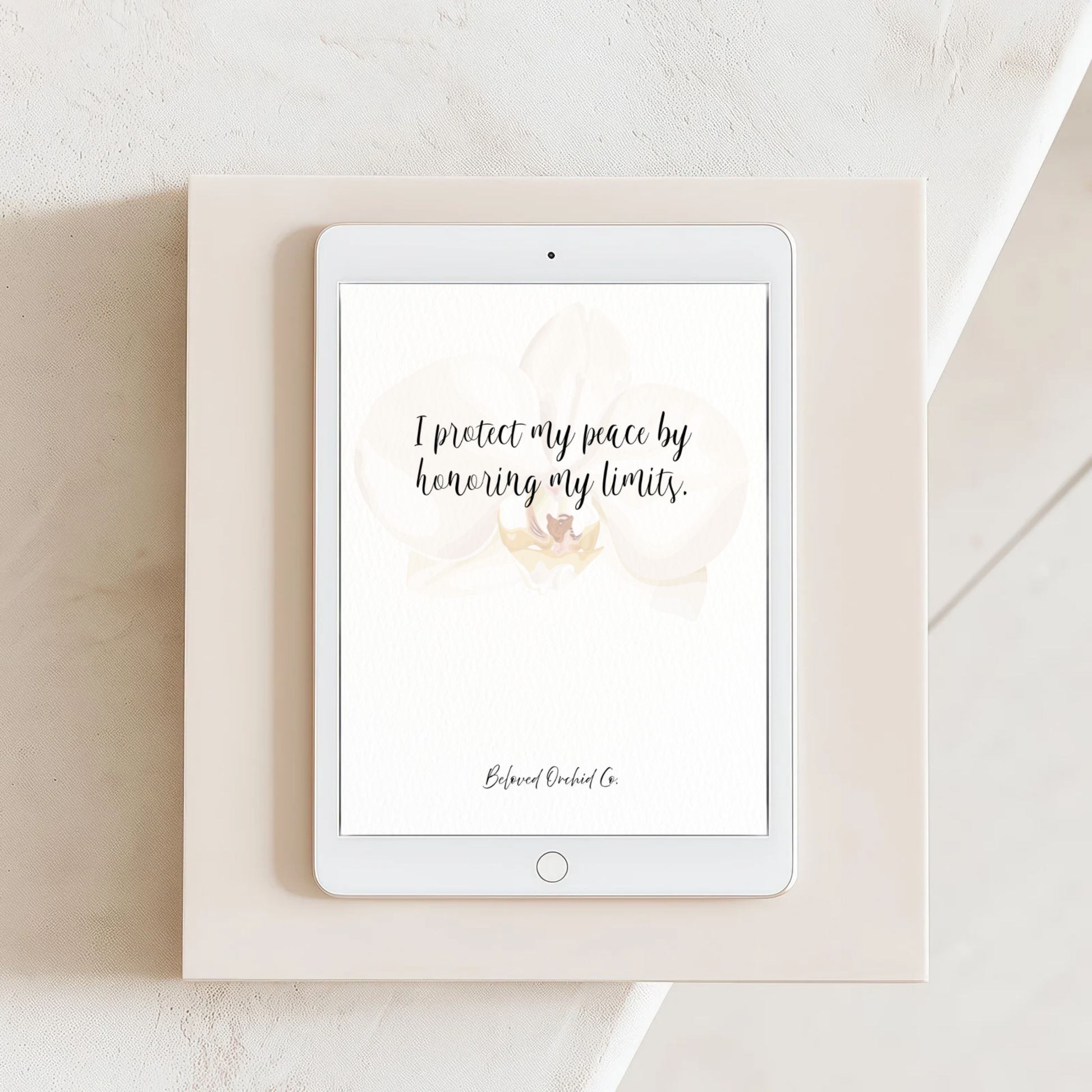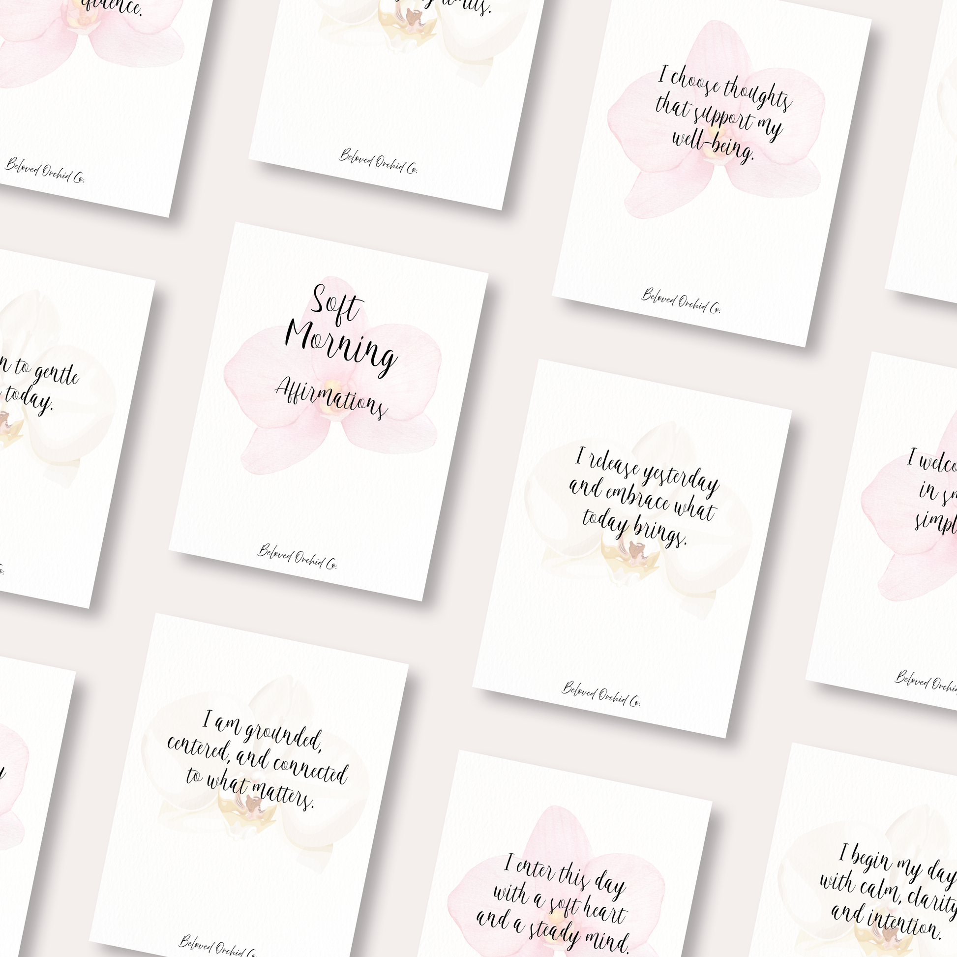 This beautifully crafted collection features ten digital morning affirmations printed on soft watercolor backgrounds — created to support a calm, mindful morning rhythm in the delicate aesthetic of Beloved Orchid Co.